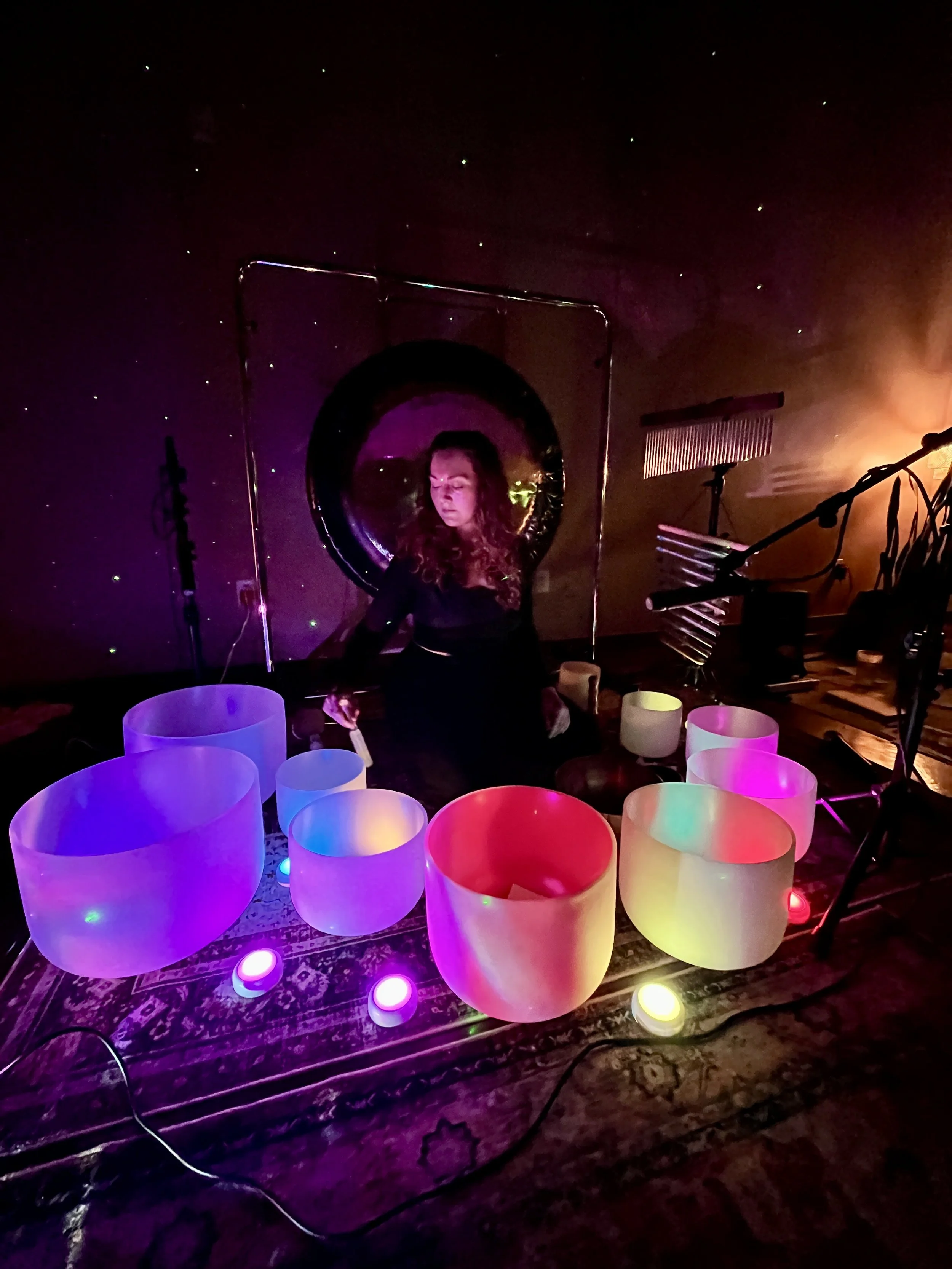 Gestate: A deep hypnotic meditation supported by crystal bowls and a solar planetary gong to access the inner void.